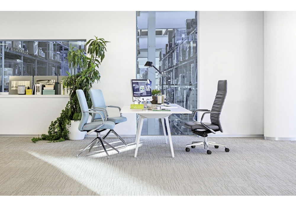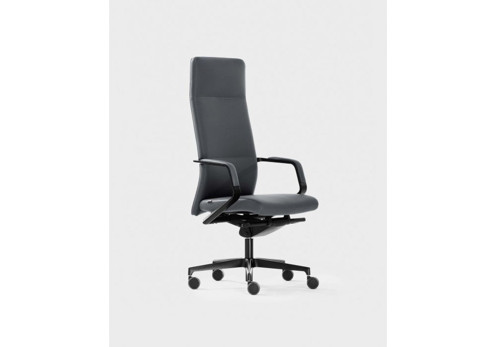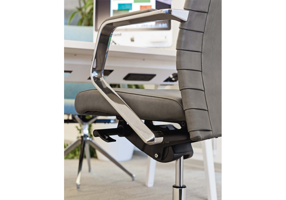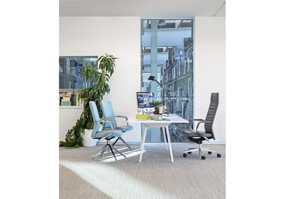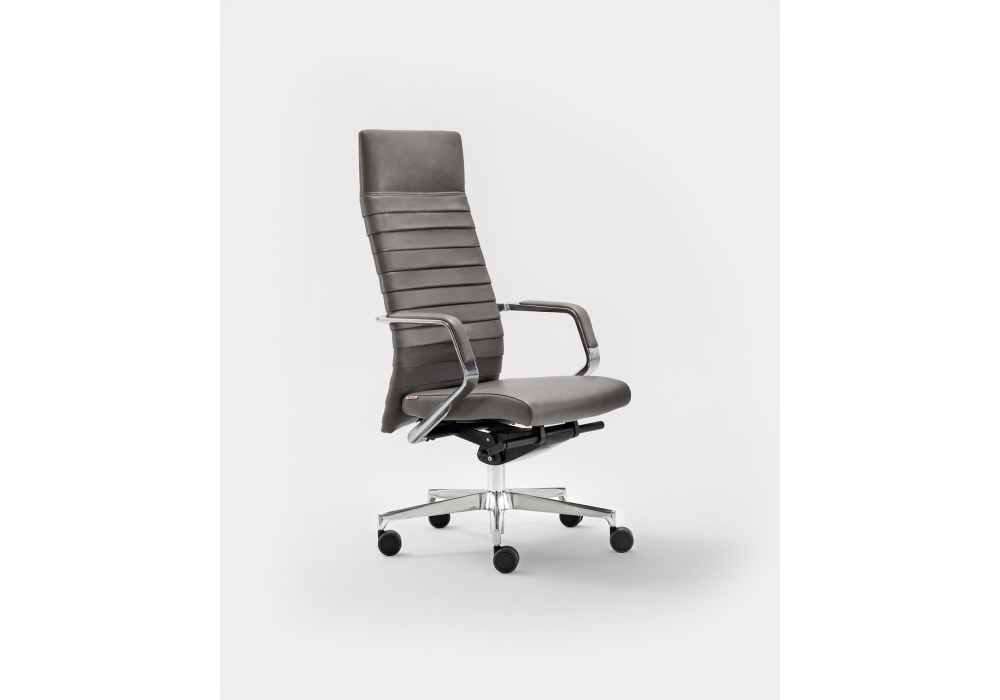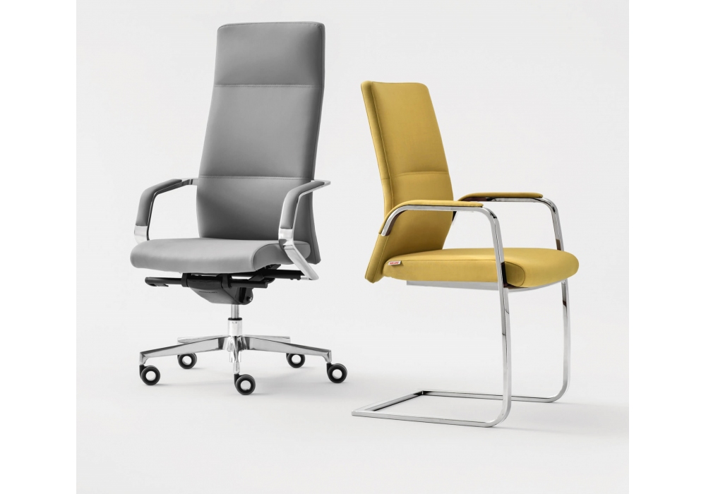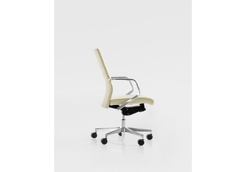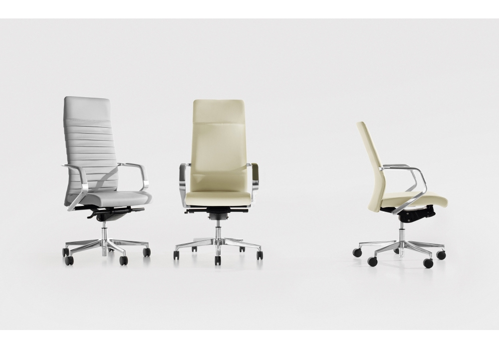 Celine von Milani entworfen, ist ein Bürostuhl mit Sitz und Rückenlehne aus feuerfestem Schaumstoff, Aluminiumbasis und Stoff- oder Lederpolsterung. Standardmäßige schwarze selbstbremsende Räder mit Ø 65 mm. Verfügbar in mehreren Modellen.