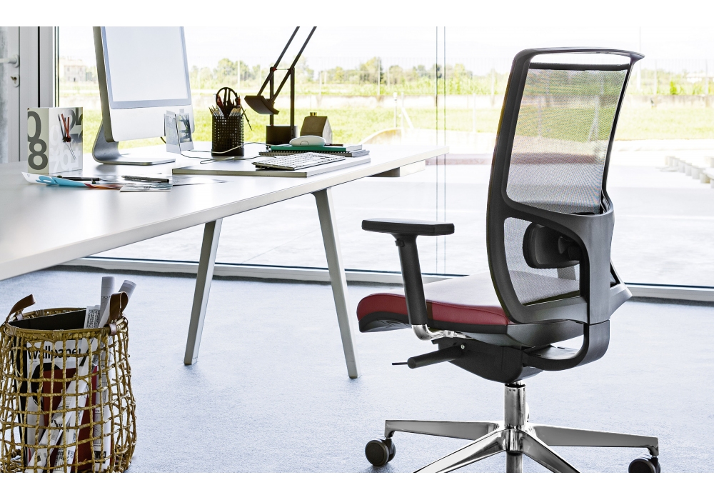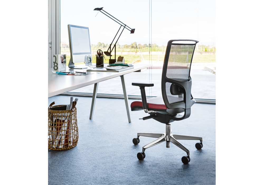 Zed von R&D Milani entworfen, ist ein Stuhl, der in vielen Varianten und in vielen Kombinationen erhältlich ist. Die Netzrückenlehne ist in acht Farben erhältlich und unabhängig und höhenverstellbar. Auf Wunsch ist eine Lendenwirbelstütze erhältlich. Stoffbezug. In verschiedenen Modellen erhältlich.