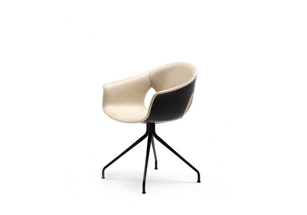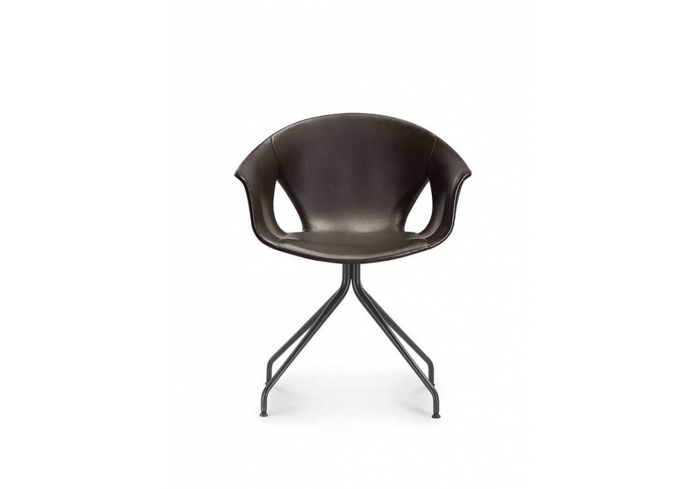 Ginger Ale Office von Roberto Lazzeroni für Poltrona Frau entworfen, ist ein kleiner Sessel mit einem 4-speichigen Stahlfußkreuz und verstellbaren schwarzen Kunststofffüßen mit Filzgleitern. Die Sitzschale besteht aus geformtem thermoplastischem Polymer und ist mit Polyurethanschaum gepolstert. Sie kann lackiert oder komplett mit Pelle Frau®-Leder oder -Stoff bezogen werden. Die Innenpolsterung ist in Pelle Frau®-Leder erhältlich, optional auch in einer Leder-Stoff-Kombination. Der Bezug ist nicht abnehmbar.