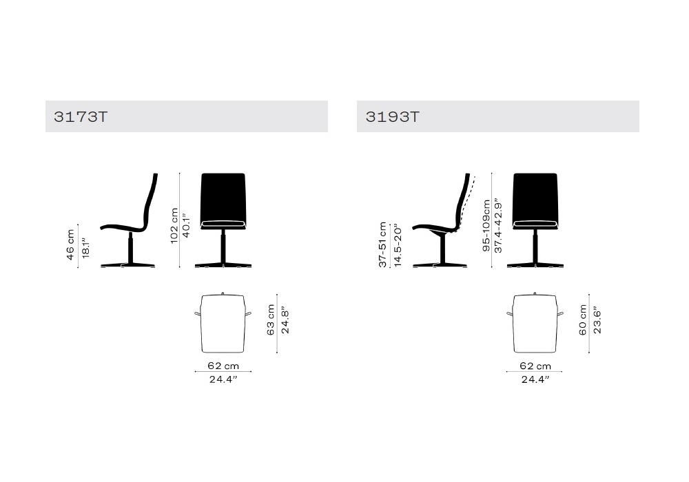 | Abmessungen | 62 x 63 x H 102 cm (3173T); 62 x 60 x H 95-109 cm (3193T). |