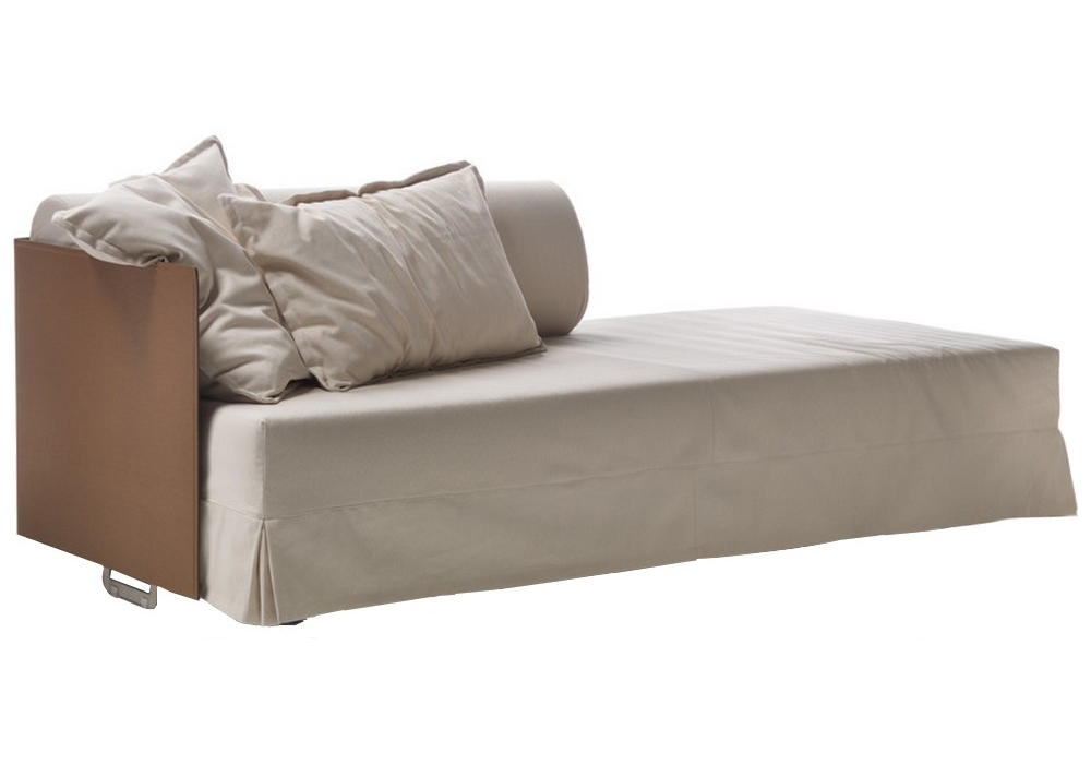 Eden is a chaiselongue designed by Antonio Citterio for Flexform. Frame and backrest in metal and wood covered with hide leathers. Backrest cushions in polyurethane and Dacron. Seat cushion mattress in polyurethane covered with protective fabric lining. Throw pillows down-filled, available also with sleeping pillow or duvet included optional platform with wooden slats. Upholstery removable fabric or leather covers. The price does not include the cost of the cushions.