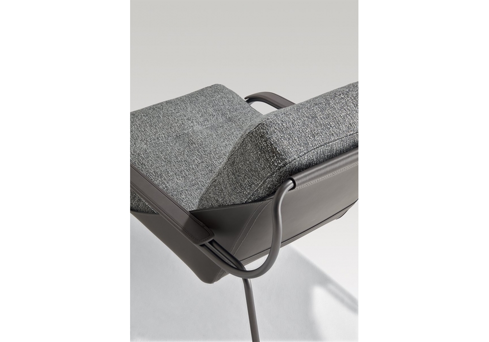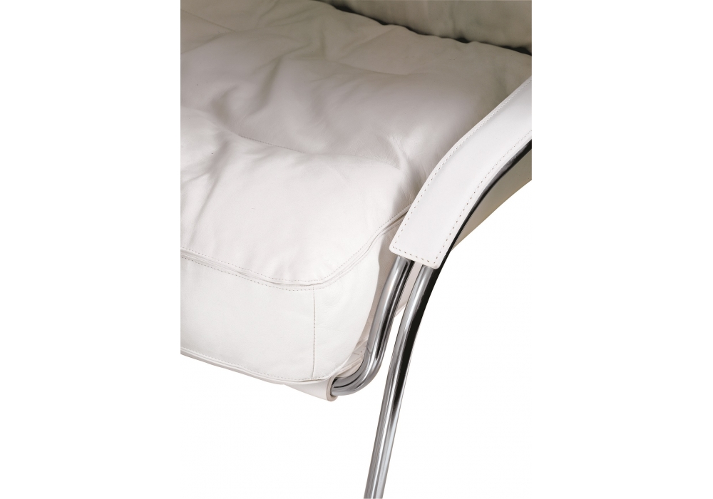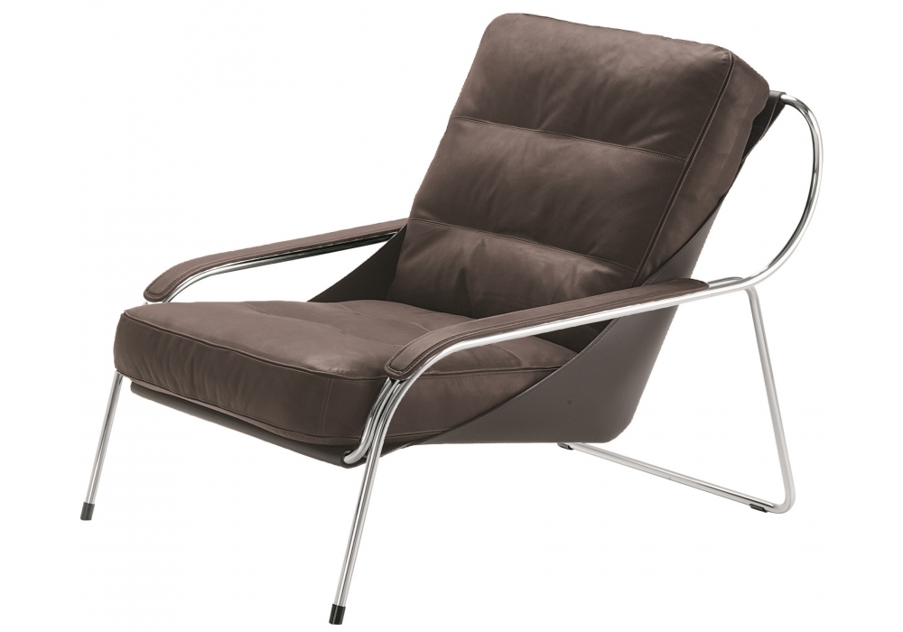 900 Maggiolina von Marco Zanuso für Zanotta entworfen, ist eine Chaiselongue mit Struktur aus Edelstahl 18/8 poliert, natur oder schwarz nickel-satiniert oder schwarz lackiert. Körper aus pigmentiertem Leder 90. Rückenkissen aus Gänsedaunen. Sitzkissen aus Polyurethan / Dacron Du Pont. Kissen und Armlehnenpolsterung in Stoff oder Leder. Erhältlich mit oder ohne Sitzpuff.