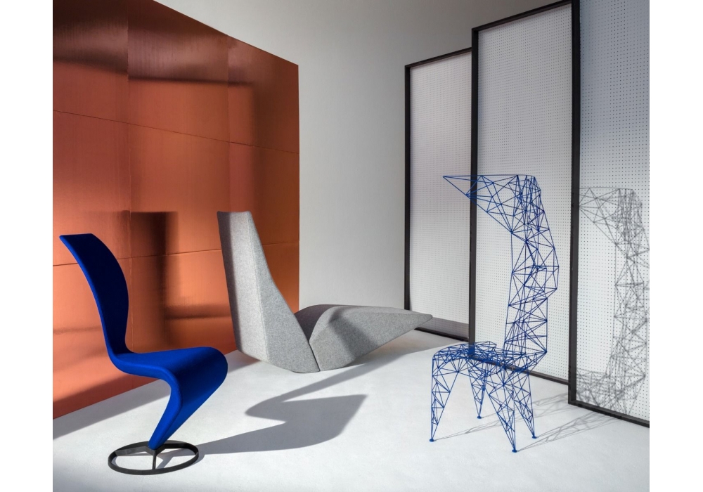 Bird Chaise von Tom Dixon entworfen, ist eine schaukelnde Chaiselongue, Bezug in Stoff oder Leder erhältlich.