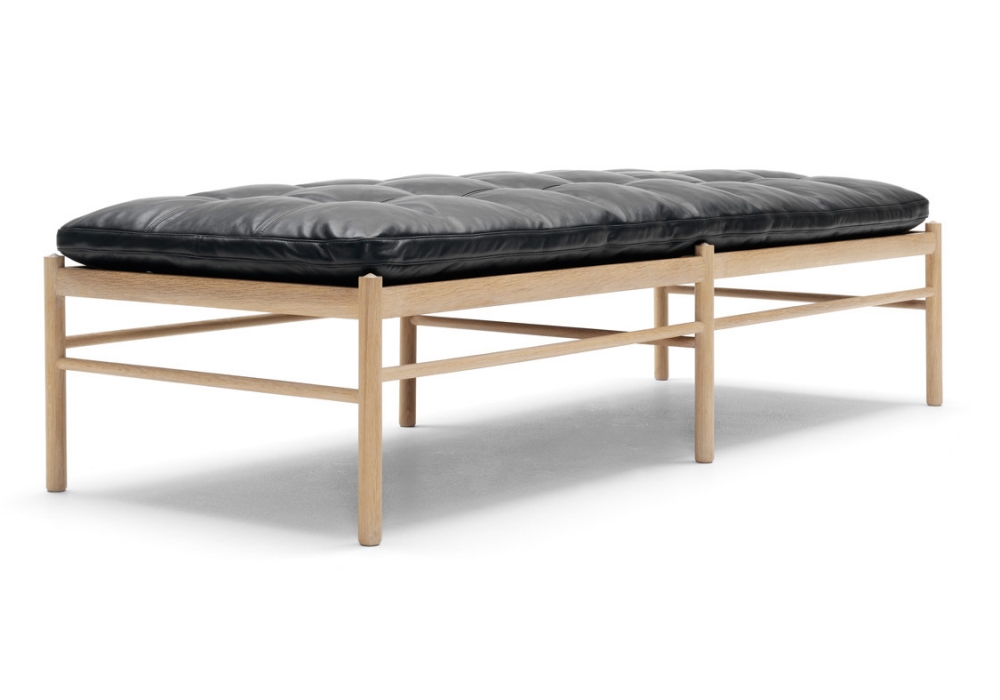 OW150 von Ole Wanscher für Carl Hansen & Søn entworfen, ist ein Daybed mit einem Rahmen aus massiver Eiche in verschiedenen Ausführungen. Die Matratze ist mit Stoff oder Leder bezogen. Erhältlich mit oder ohne Kopfstützenkissen.