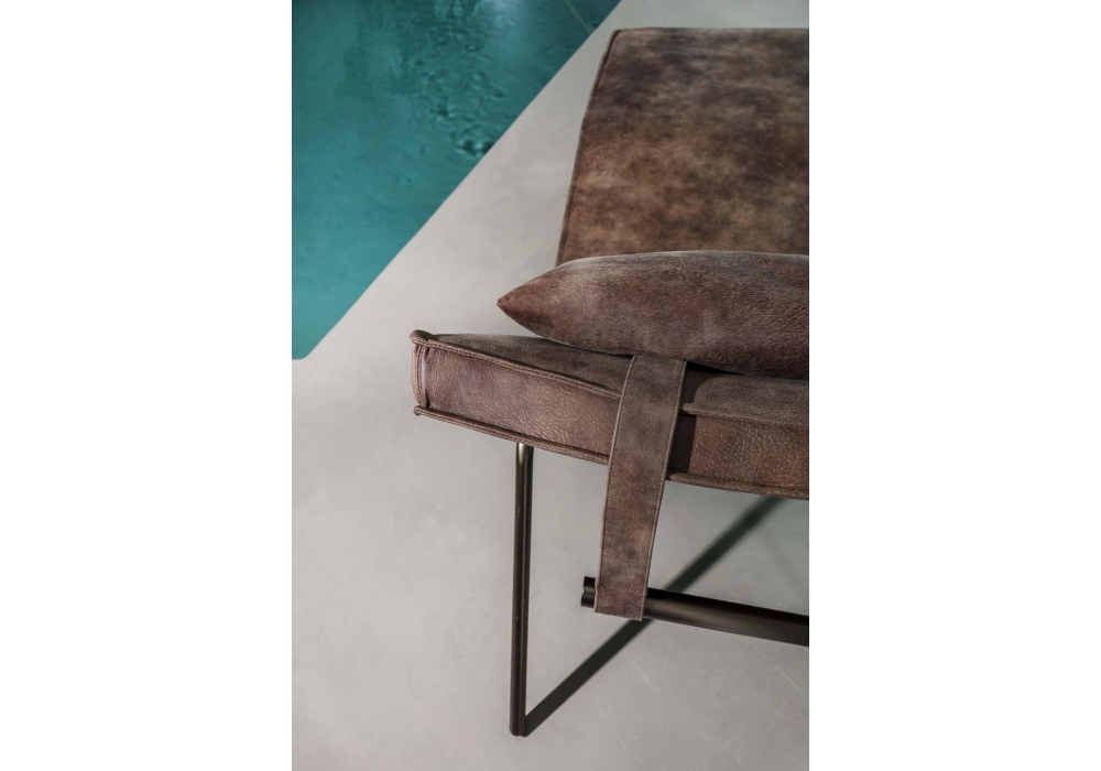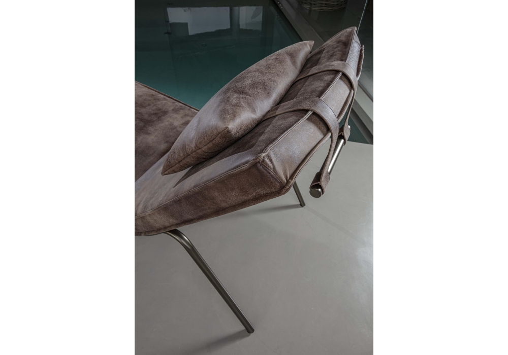 Daybed von RedCreative für Enrico Pellizzoni entworfen, ist eine Chaiselongue mit Basis aus lackiertem Metallrohrstahl. Sitz mit Polyurethanschaum gepolstert, Bezug in verschiedenen Materialien und Farben. Abnehmbares Kopfstützenkissen mit lackiertem Gegengewicht.