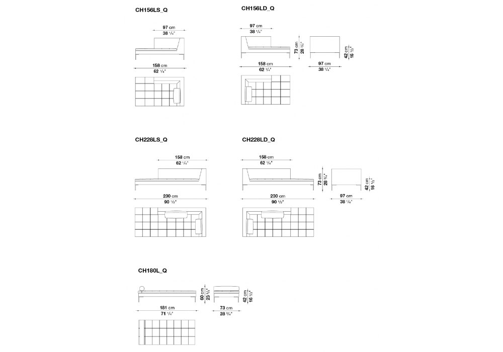 | Abmessungen | 158 x 97 x H 73 cm; 230 x 97 x H 73 cm; 181 x 73 x H 60 cm. |