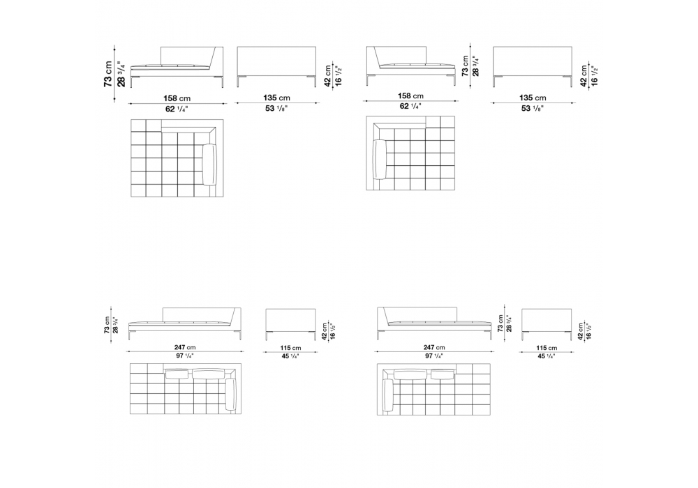 Charles Large Carré entworfen von Antonio Citterio für B&B Italia ist eine Chaiselongue mit tragender Struktur aus Rohr- und Stahlprofilen mit lackierten Aluminiumfüßen. Die Polsterung des Rahmens besteht aus geformtem Polyurethan unterschiedlicher Dichte, die Auskleidung besteht aus Polyesterfasern. Die Polsterung des Sitzkissens besteht aus geformtem Polyurethan unterschiedlicher Dichte, sterilisierten Daunen und Polyesterfaserfutter, während die Polsterung der Rückenlehne aus bandartiger Polyesterfaser besteht. Die Polsterung besteht aus Leder oder Stoff. Charles Large Carré ist in verschiedenen Modellen und Ausführungen erhältlich.