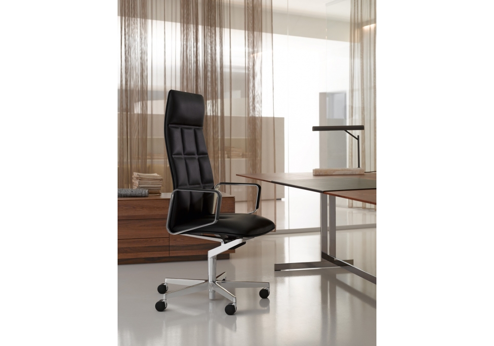 Leadchair Executive von Eoos für Walter Knoll entworfen, ist ein schöner Sessel mit 5-Stern Drehbasis auf Rollen, Armlehnen und Rückenlehne verfügbar in 3 verschiedenen Versionen. Höhenverstellbarer Mechanismus. Polsterung verfügbar in den verschiedenen Stoffen oder Ledern. Mit weichen Rollen für Moquette oder harten Rollen für hart Böden.