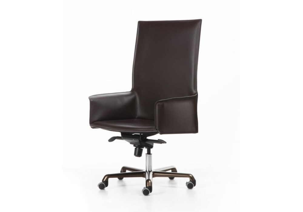 Pasqualina Alta von RedCreative für Enrico Pellizzoni entworfen, ist ein Drehsessel mit hoher Rückenlehne, Stahlrohrstruktur, Lederpolsterung in verschiedenen Farben. Untersitz aus Blech mit schwarzem technischem Stoff bezogen. Erhältlich in zwei Größen.