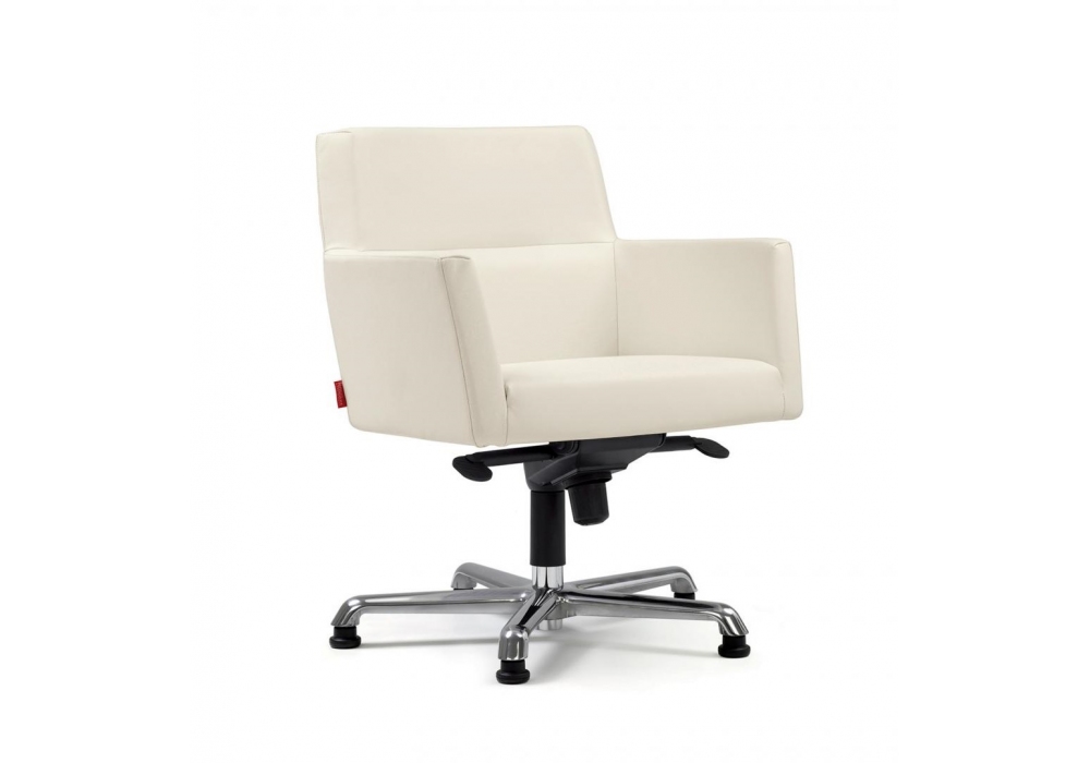 Web von G&R Fauciglietti für Enrico Pellizzoni entworfen, ist ein Drehsessel mit tragender Struktur aus Metall, geschäumt in Polyurethanschaum, Bezug aus Leder. Basis mit Rädern. Gasneiger Sitzhöhenverstellmechanismus.