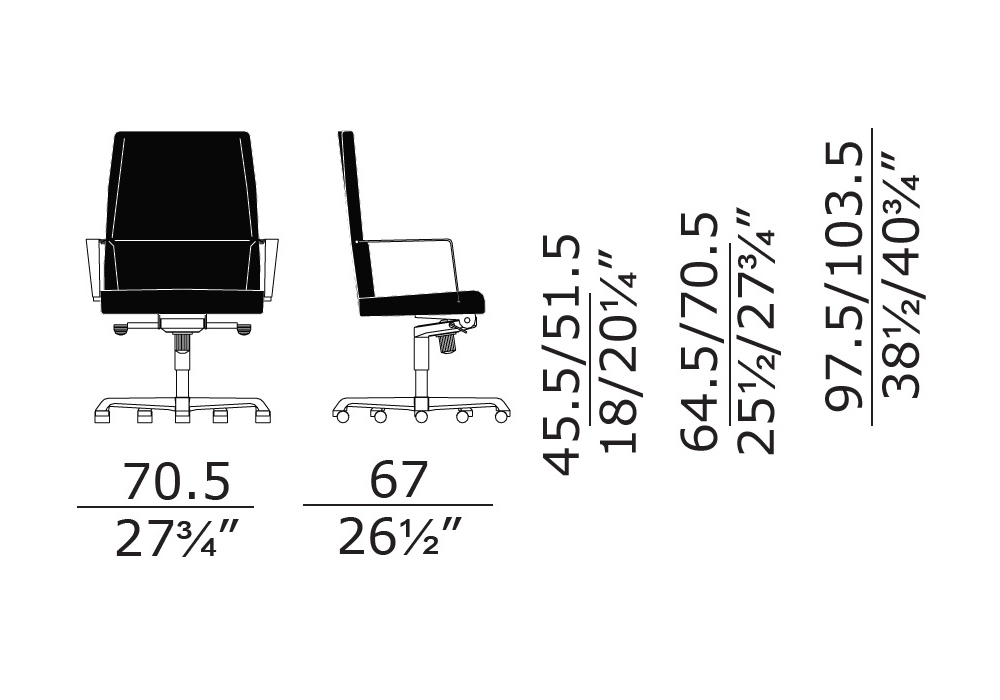 | Armlehnenhöhe | • 64,5/70,5 cm |