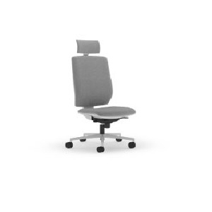 Mirai White von R&D Sitlosophy für Sitlosophy entworfen, ist ein Sessel mit Sitz aus gepresstem Sperrholz, Rückenlehne aus verstärktem Polypropylen, Polsterung aus Schaumstoff und Polsterung aus Stoff oder Kunstleder. Die Kopfstütze ist in Höhe und Neigung verstellbar.