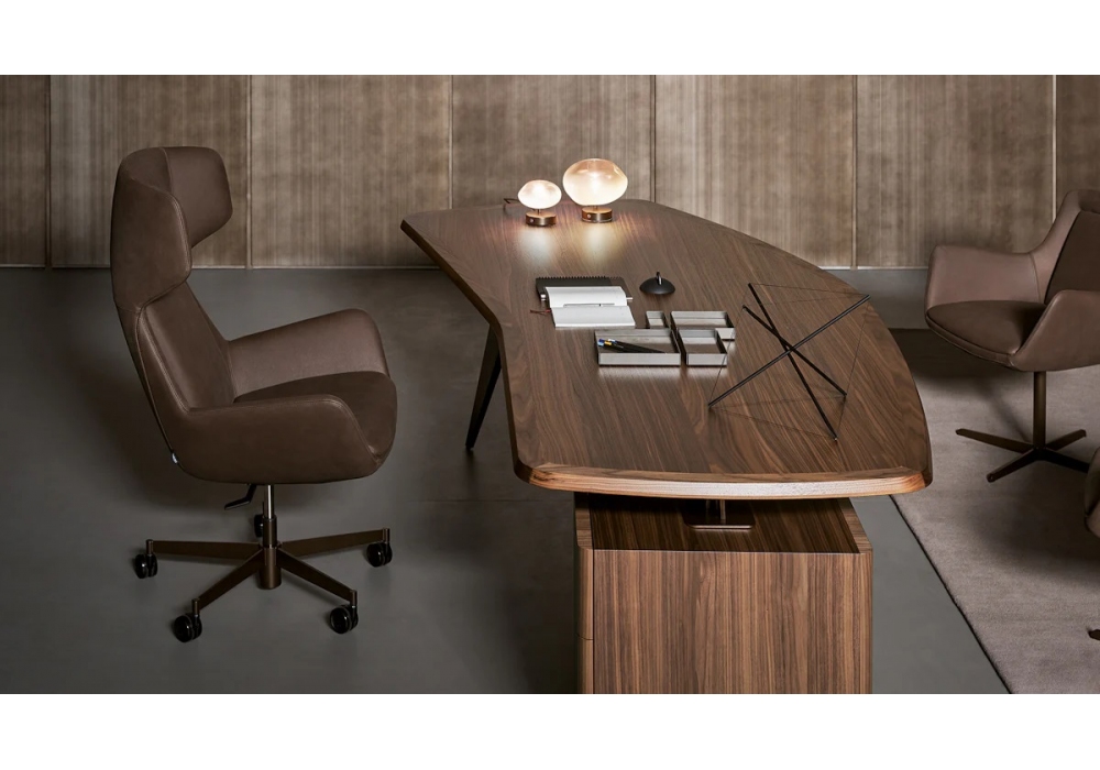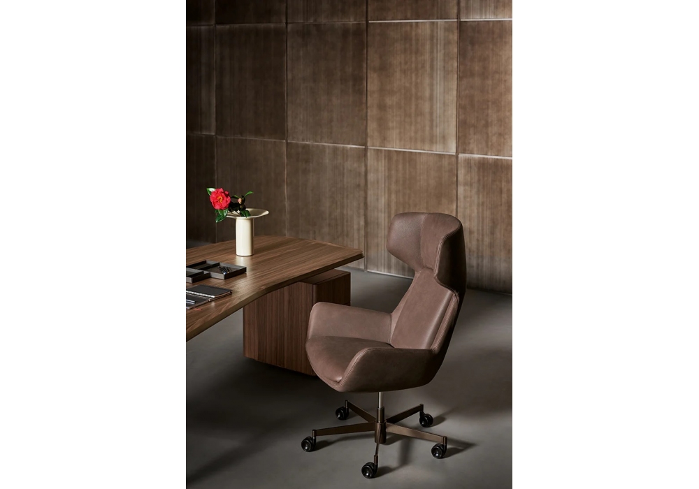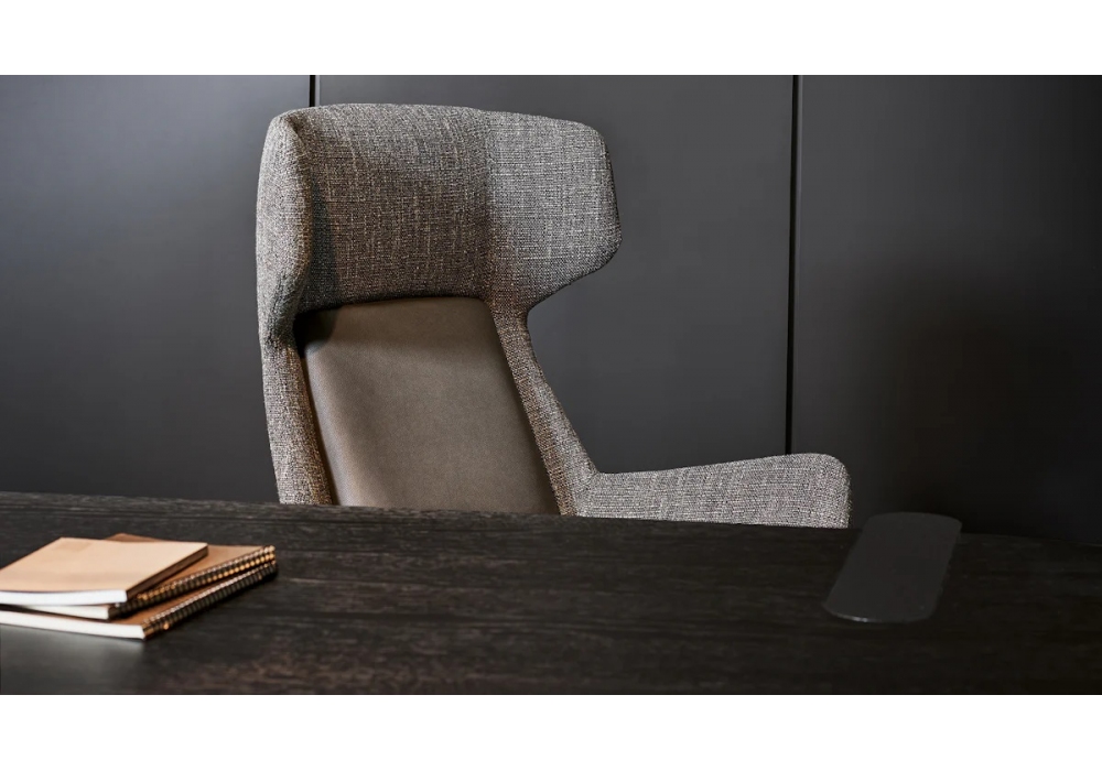 Newton von Bonaldo Lab für Bonaldo entworfen, ist ein Bürosessel mit Stahlgestell, gepolstertem Sitz und Rückenlehne mit Stoff- oder Lederbezug, auch in der zweifarbigen und zweigepolsterten Version erhältlich, Stoffsitz und Ledervorderkissen. Sitzhöhe verstellbar.