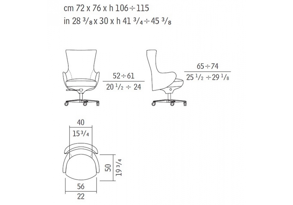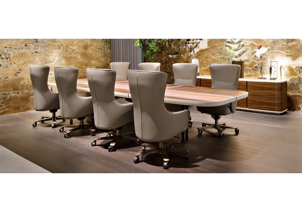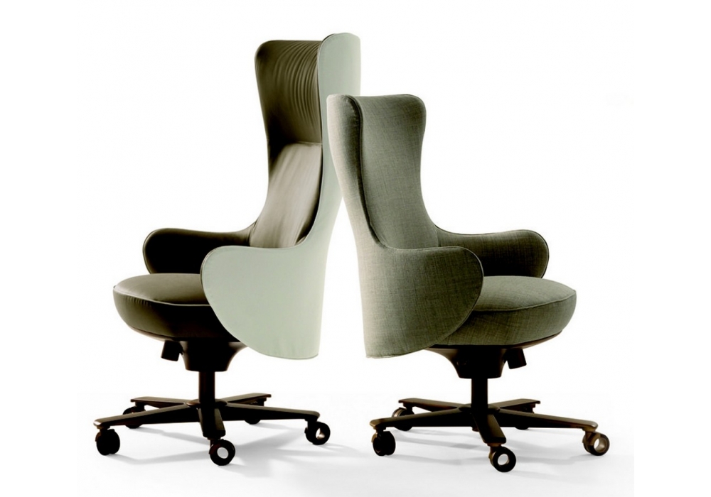 Genius is an armchair designed by Roberto Lazzeroni for Giorgetti. Armchair with the structure of the back in profiled steel and the seat in poplar plywood. The padding is in flexible coldfoamed polyurethane covered with fibre. The armchair have a 5 point revolving base, rotating castors, gas spring for height regulation and a tilting mechanism for positioning.