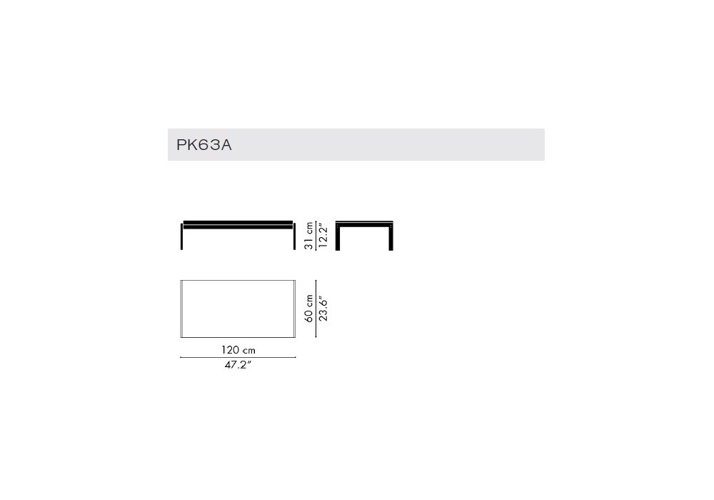 PK63A von Poul Kjærholm für Fritz Hansen entworfen, ist ein Couchtisch mit Platte aus Marmor, Granit oder Schiefer und Basis aus gebürstetem satiniertem Edelstahl.