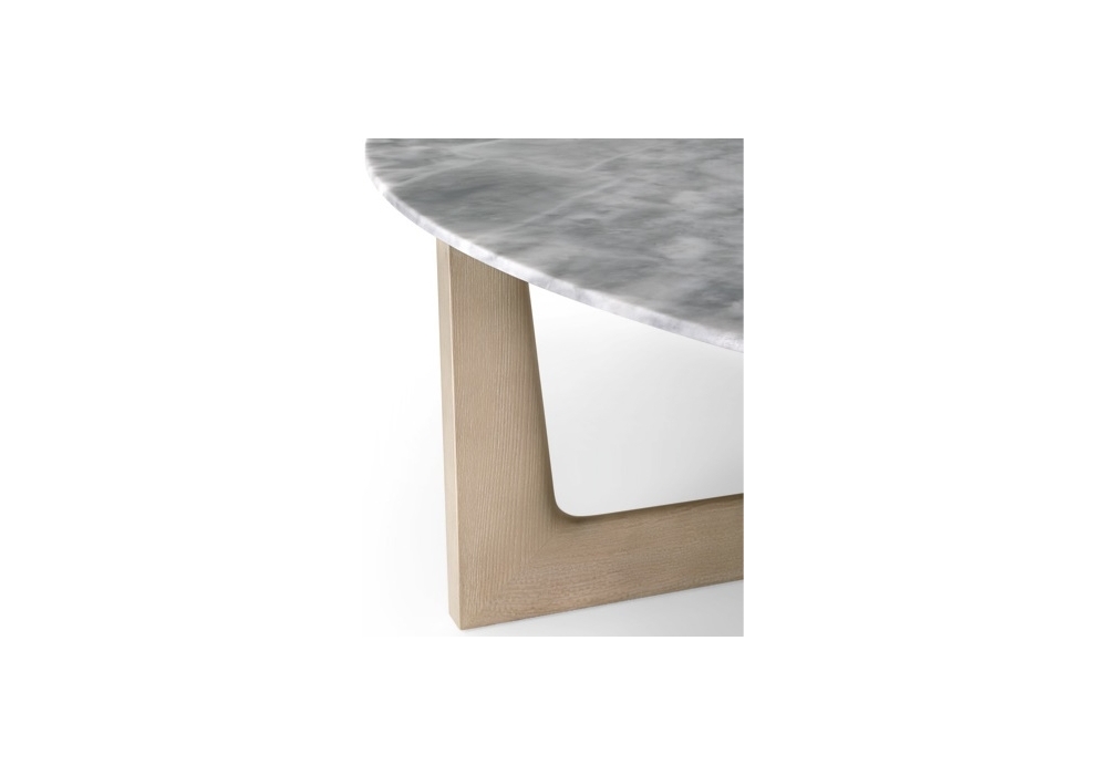 Ilary ist ein System aus 5 Tischchen in verschiedenen Höhen, Formen und Konstruktionen von Jean-Marie Massaud für Poltrona Frau entworfen. Ein Mix aus Finishlösungen und Materialien, um unterschiedliche Wirkungen und Kombinationen zu erzielen. Untergestell aus massiver Esche mit Havanna-Finish und Tischplatte aus mattglänzendem Marmor „Grigio Roma“ bei den beiden großen und niedrigen Tischchen in rechteckiger und runder Ausführung. Die Unterbauplatte ist aus schwarz lackiertem Multischicht-Birkenholz. Materialvariationen bei den beiden kleineren und hohen, runden Tischen. Das Untergestell aus gebürstetem, brüniertem Stahl harmoniert elegant mit der mit Cuoio Saddle Extra-Leder bezogenen Tischplatte. Das niedrigere Tischchen ist auch mit Oberseite aus Marmor „Grigio Roma“ erhältlich. Die Unterbauplatte besteht aus schwarz lackiertem Stahl. Zur Gänze aus Marmor „Grigio Roma” mit mattglanzem Finish gefertigt ist das Monolith-Tischchen, das die Kollektion abrundet. Die Oberseite ist rund, und das Stützelement zeichnet sich durch einen imposanten, in den Stein gehauenen Griff aus, dank dem sich das Tischchen einfach transportieren lässt. Vereint werden die beiden Elemente durch eine unsichtbare Edelstahlstruktur.