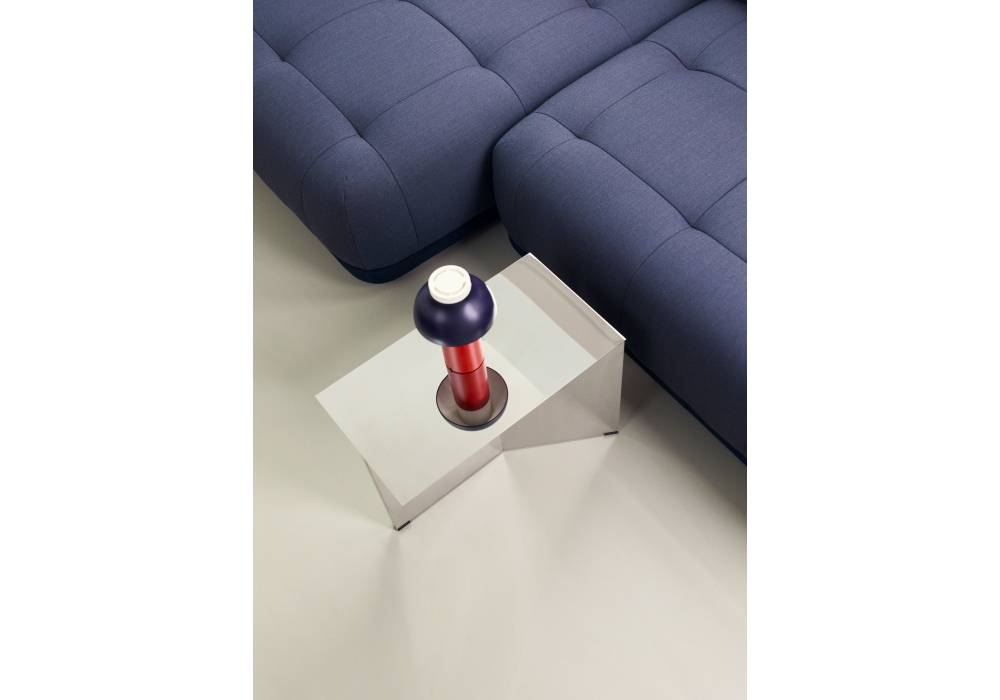 Slit Oblong hergestellt und entworfen von Hay, ist ein Couchtisch mit einer geometrischen Form aus hochglanzpoliertem Stahl.