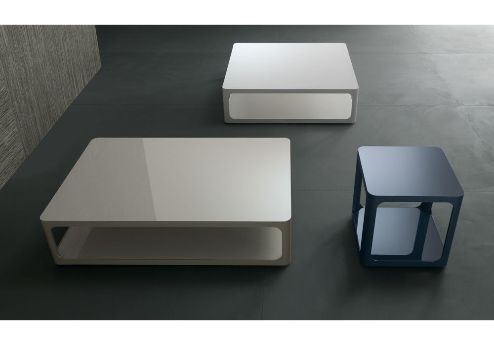 Sixty von Giuseppe Bavuso für Rimadesio entworfen, ist einer Serie von kleinen Tischen aufgegriffen, mit einem vielfältigen Angebot an Platten aus mattweißem Acryl und der Kollektion lackierter Ecolorsystem-Glasplatten, mit insgesamt 50 Farbtönen in der Ausführung glänzend oder matt. Die primäre Geometrie der Serie Sixty wird zum Mittelpunkt des Gesprächsbereichs.