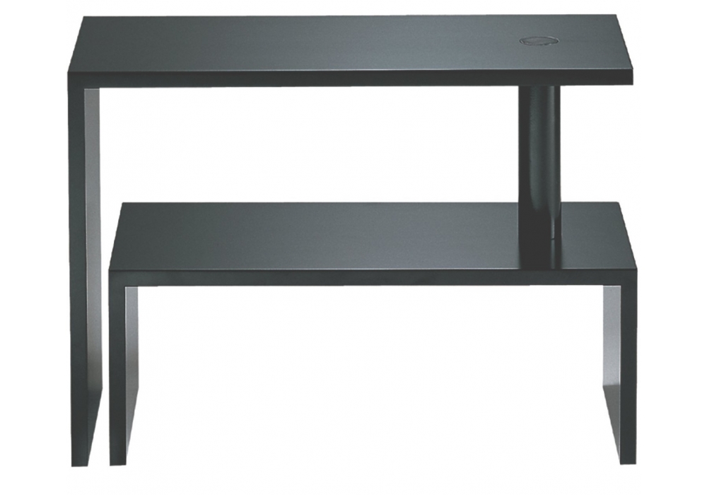 638 Basello von Achille Castiglioni für Zanotta entworfen, ist ein Couchtisch mit doppelter Höhe und variabler Öffnung. Mitteldichte Holzfaserstruktur mit kratzfester Prägung in Weiß-, Schwarz- oder Burgundertönen. Gelenk aus schwarz lackiertem Stahl in den schwarzen oder weinroten Versionen oder weiß in der weißen Version.