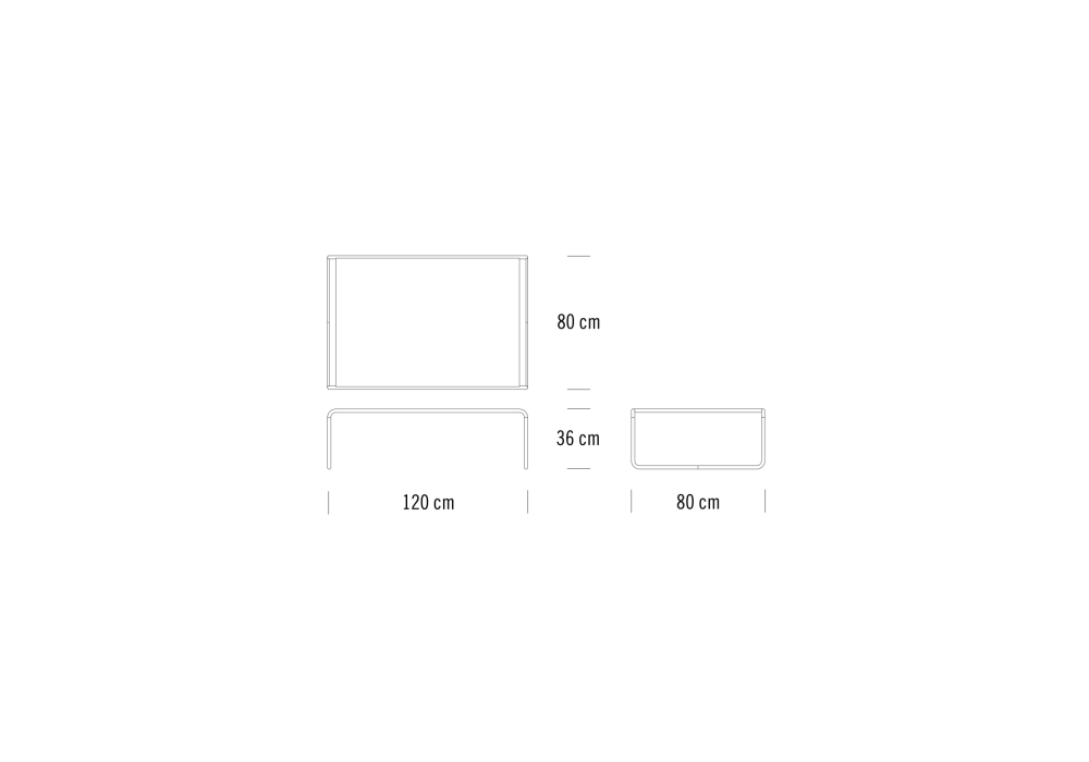 B 20 von Thonet entworfen, ist ein Couchtisch mit verchromter oder lackierter Stahlrohrstruktur in verschiedenen Farben. MDF-Platte in verschiedenen Ausführungen. Auch der Couchtisch ist in zwei Größen und mit oder ohne zusätzliche Ablagefläche erhältlich.
