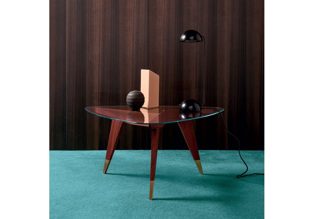 D.552.2 von Gio Ponti für Molteni&C entworfen, ist ein Couchtisch mit einer Struktur aus massivem Rosenholz und einer extra klaren Glasplatte. Füße aus gebürstetem Messing.