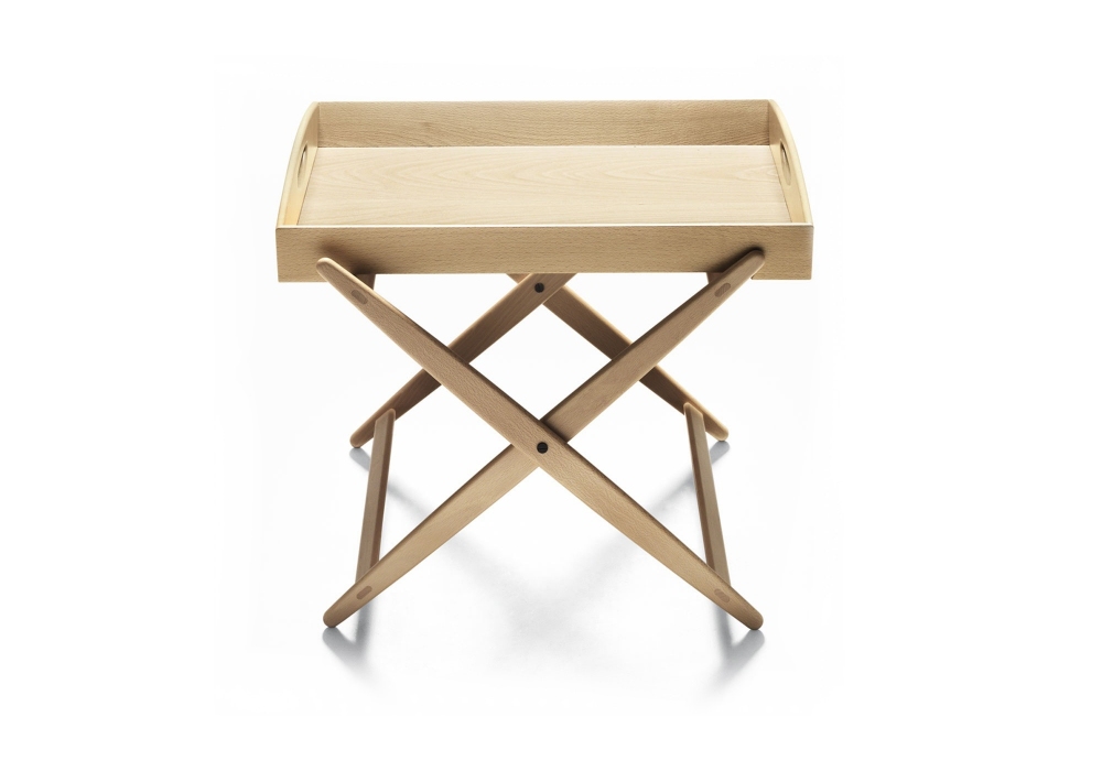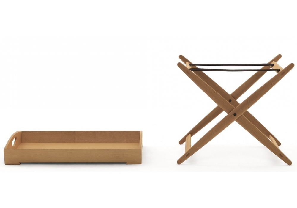 Mate von Achille Castiglioni für DePadova entworfen, ist ein Couchtisch mit klappbarer Basis und Struktur aus massiver Naturbuche oder massiver Holzkohle-Asche und blauen Baumwollriemen. Platte aus Birkensperrholz.