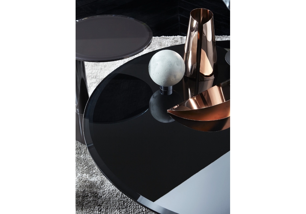 Oto von Oscar & Gabriele Buratti für Gallotti&Radice entworfen, ist ein Couchtisch. Glasplatte mit Facettschliff. Gestell Metall hochglänzend lackiert. Lieferbar in den Farben schwarz, blau grau und schwarzbraun. Lackierung jeweils hochglanz oder matt satiniert.