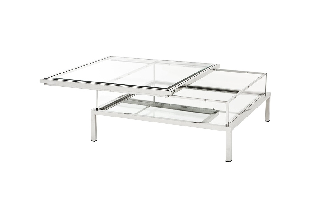 Harvey Couchtisch von Eichholtz entworfen, ist ein großer und raffinierter Couchtisch mit verschiebbarer Glasplatte und verspiegeltem Sockel. In verschiedenen Größen und Ausführungen erhältlich.
