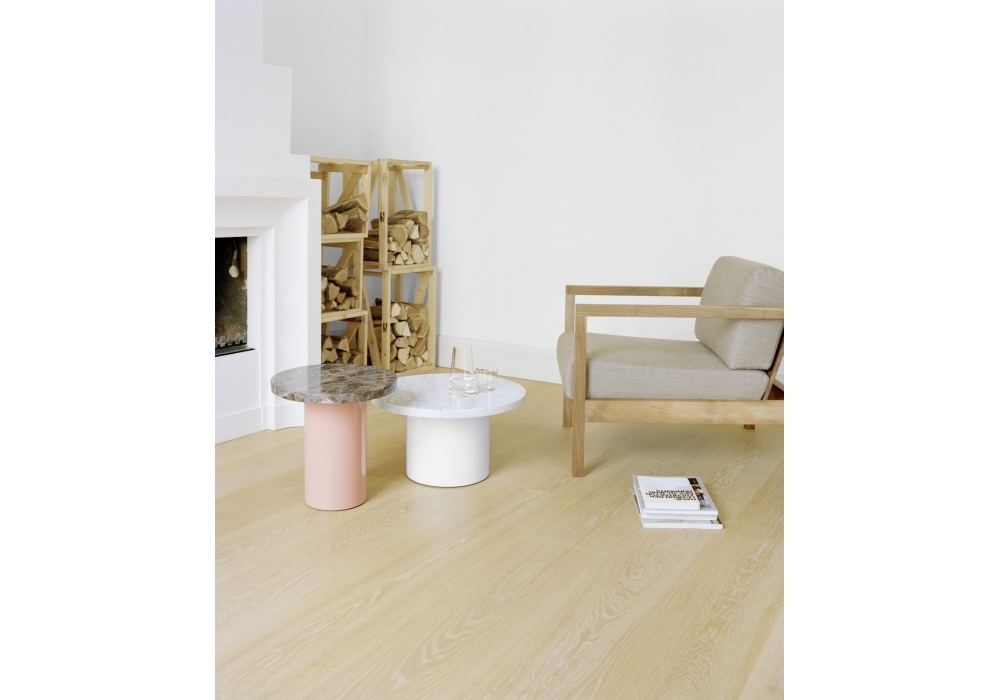 CT09 Enoki von Philipp Mainzer für E15 entworfen, ist ein Beistelltisch mit Holz- oder Marmorplatte und Stahlfuß, der mit einem Filzring ausgestattet ist, um Kratzer auf dem Boden zu vermeiden. Verfügbar in mehreren Ausführungen und Abmessungen.