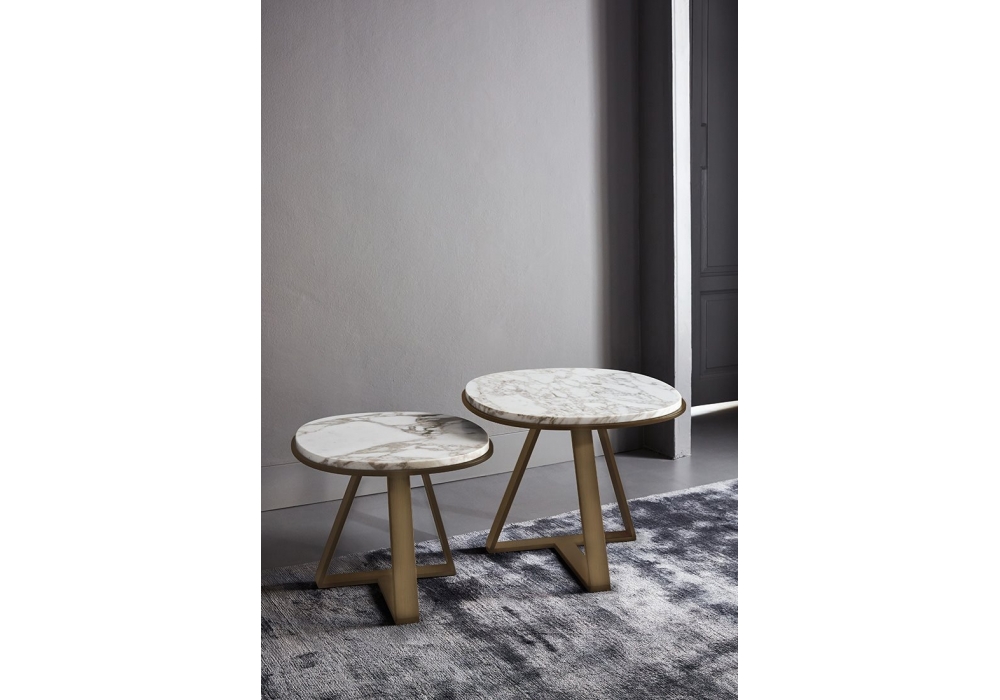 Judd Editions Shine designed by Andrea Parisio for Meridiani is a low tables collection with bronzed brass or black varnished frame with undershelf in the same finish. Table top available in marble, matt or glossy colours lacquered. It is made of different sizes.