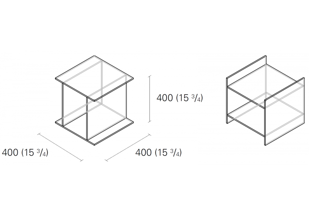 CT07 Drei von Philipp Mainzer für E15 entworfen, ist ein Beistelltisch, der aus vier Scheiben aus gehärtetem Glas besteht. Verfügbar in mehreren Ausführung.