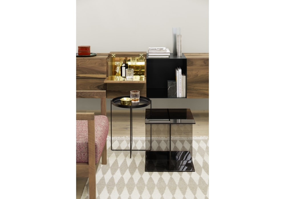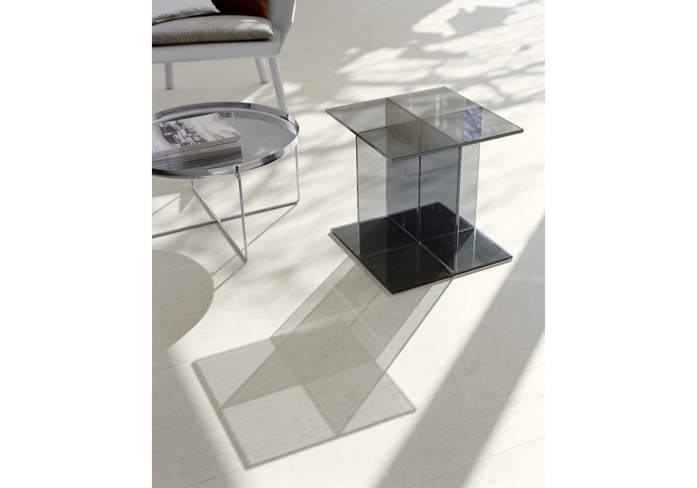 CT08 Vier von Philipp Mainzer für E15 entworfen, ist ein Beistelltisch bestehend aus vier Platten aus gehärtetem Glas. Verfügbar in mehreren Ausführung.