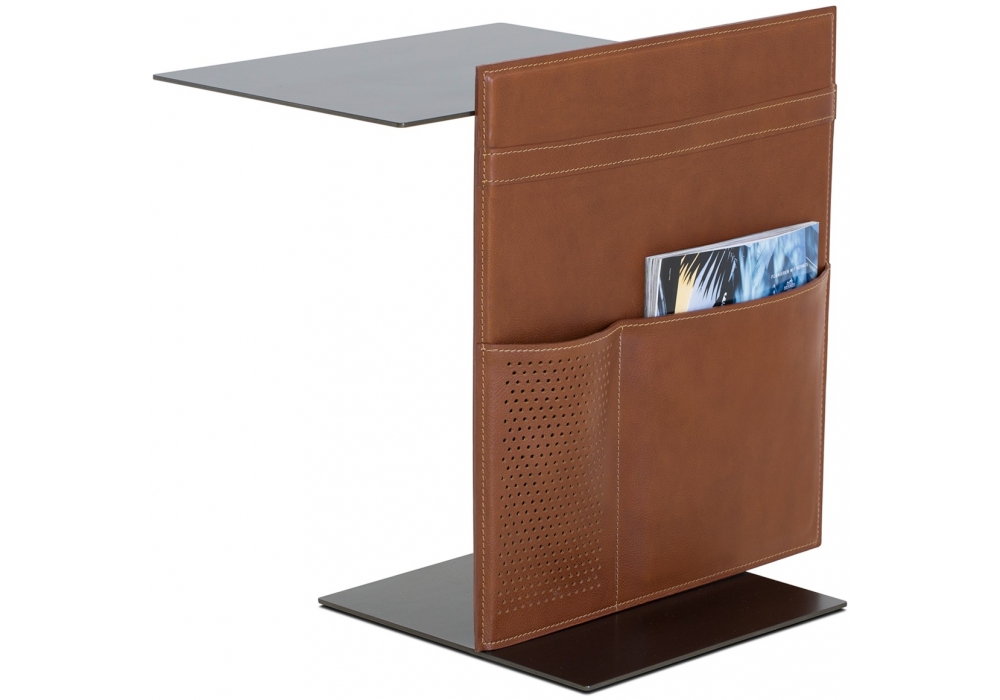 Note von LucidiPevere für Lema entworfen, ist ein Beistelltisch mit Metallstruktur aus Bronziert Ausführung und Ledertaschen für Zubehör.