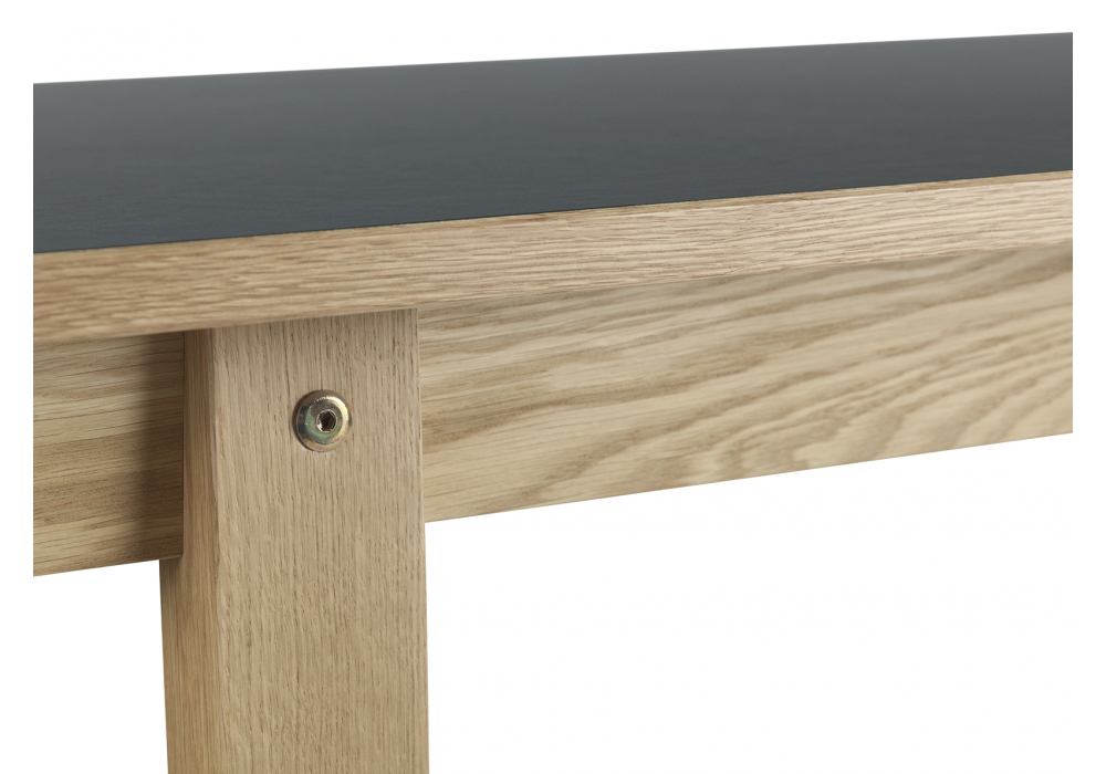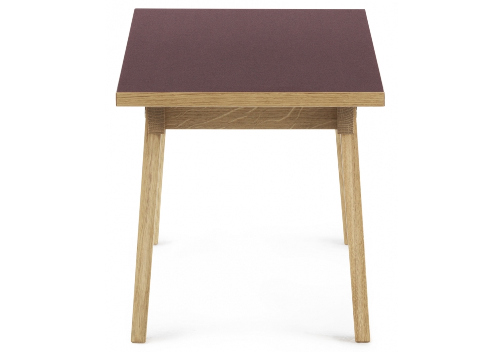 Slice entworfen von Hans Hornemann für Normann Copenhagen ist ein Couchtisch, komplett aus Eiche, mit Linoleumplatte. Linoleum als Naturprodukt hat antibakterielle und selbstheilende Eigenschaften, die dem Tisch eine angenehme Haptik verleihen.