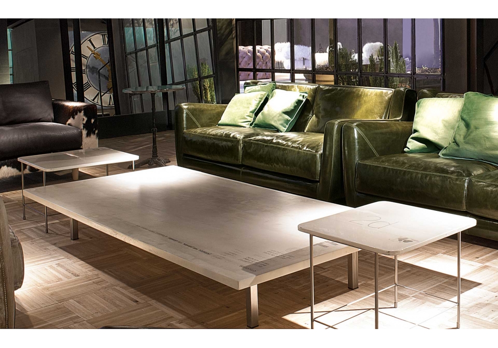 Table-Au von Draga & Aurel für Baxter P. entworfen, ist eine niedrige Tische-Kollektion. Beine aus gebürstetem Metall. Platte aus Holz mit Harzbeschichtung. Hand dekoriert Tischplatte nach dem Künstler Inspiration.