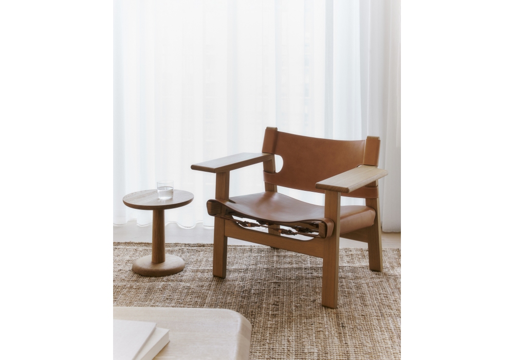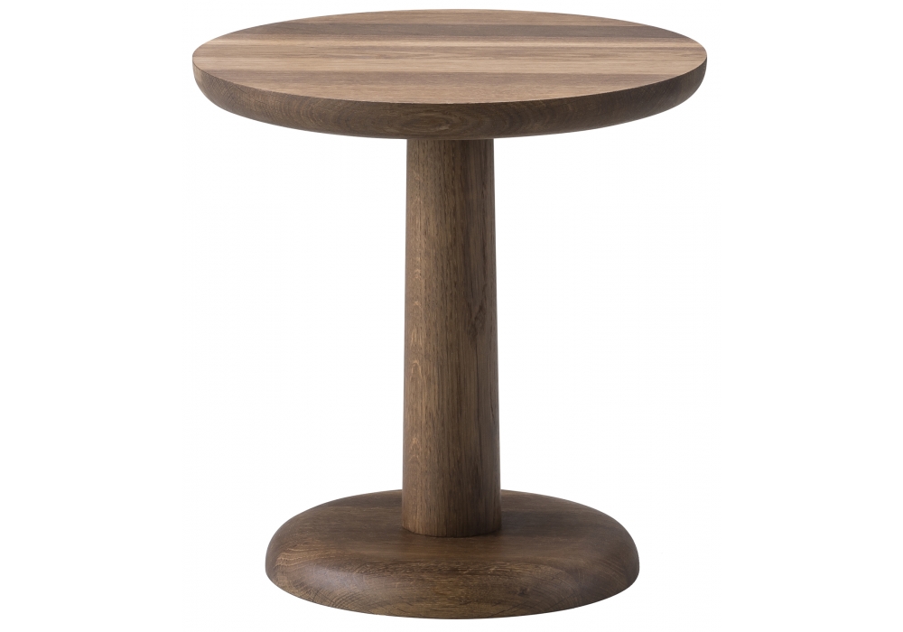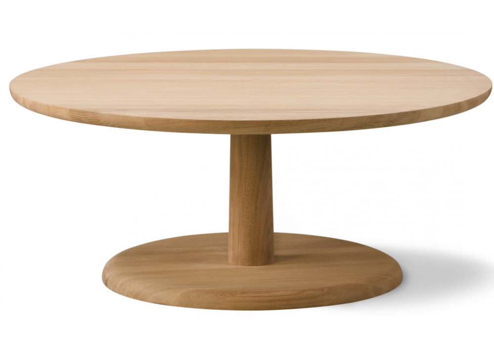 Pon von Jasper Morrison für Fredericia entworfen, ist ein Couchtisch aus Massivholz in verschiedenen Größen. Oberseite, Säule und Sockel sind durch Zugstangen aus Stahl verbunden.