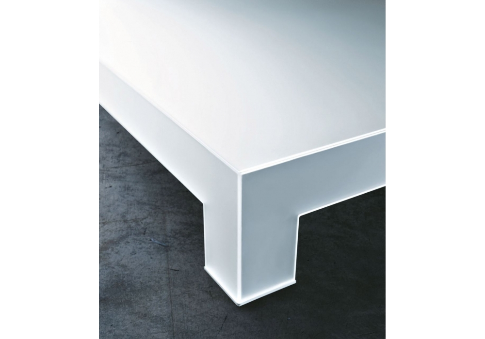 Atlantis von Lorenzo Arosio für Glas entworfen, ist ein schöner Tisch bestehend aus Tafeln in Sicherheitsglas 6 mm stark, mit Wasserstrahl geschnitten, mit Kanten geschlieffen mit 45° Steilfacette und zusammengeklebt. Erhältlich in folgenden Varianten: Extralight Klarglas oder Glänzende Lackierte Gläser. Die Genügsamkeit und die Reinheit der Form und die besonderen Bearbeitungstechniken sind die Hauptmerkmale dieser Couchtische. Auch verfügbar in 8 Größen.