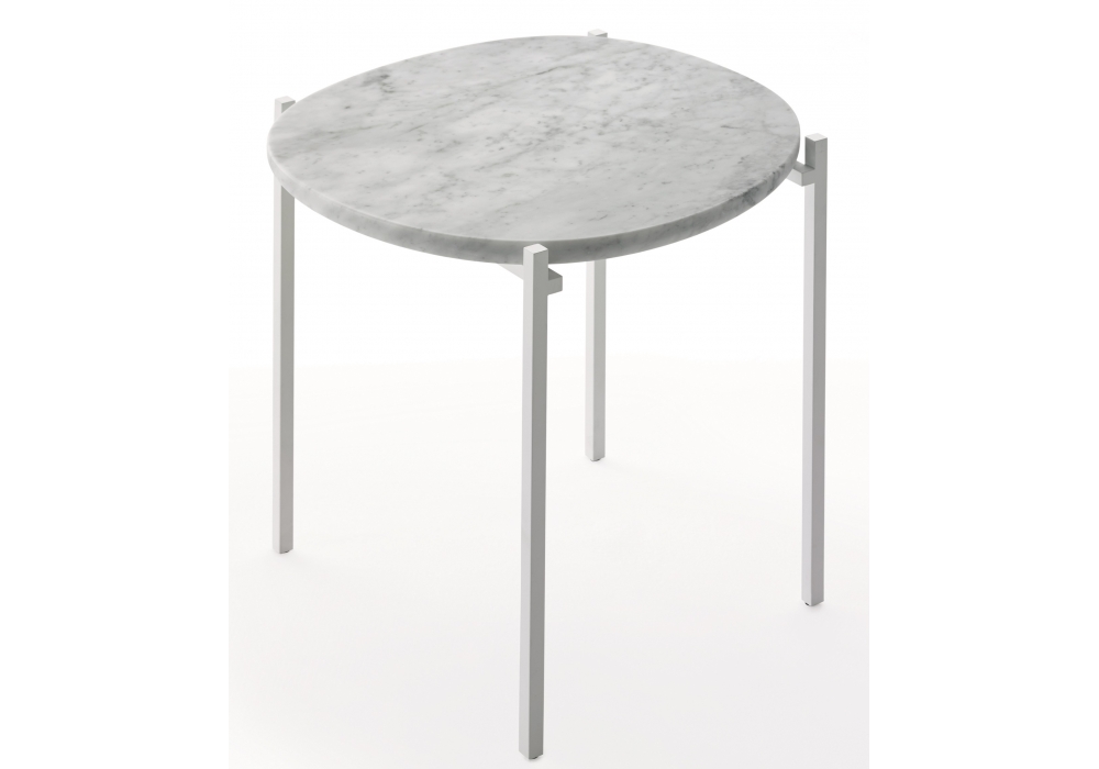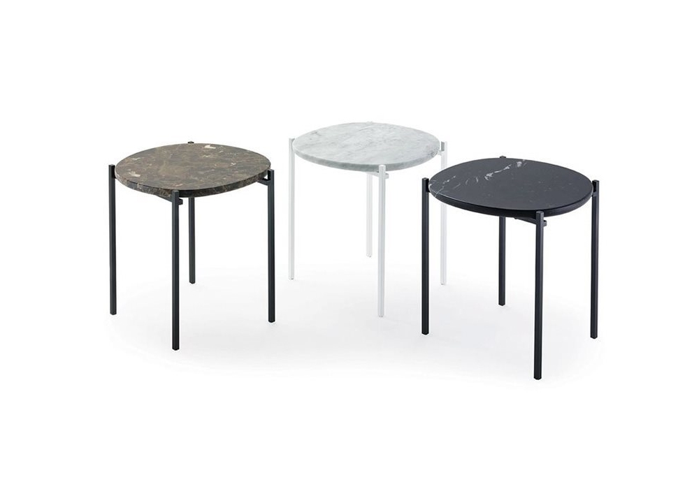 648 Niobe von Federica Capitani für Zanotta ist eine Beistelltisch mit Gestell aus weiß oder schwarz lackiertem Stahl. Platten aus weißem Carrara Marmor, oder aus schwarzem Marquinia Marmor oder aus Emperador Marmor, Stärke 30 mm, mit Fleckenschutz Lackierung aus klarem matten Polyester.