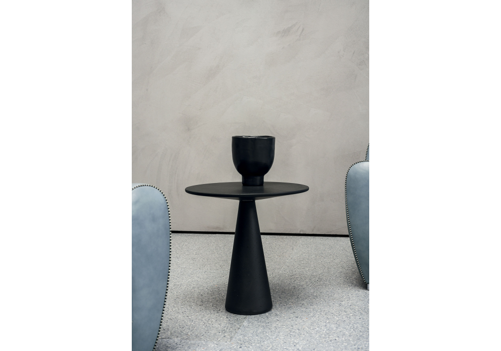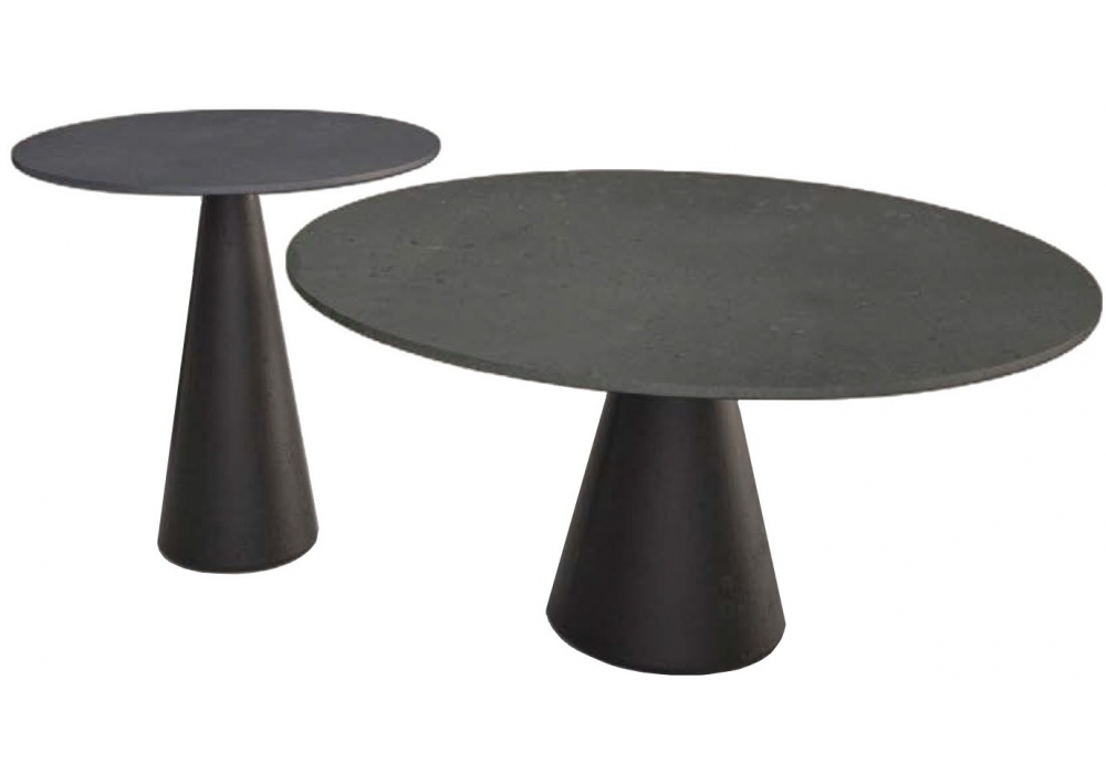 Jove von Draga & Aurel für Baxter entworfen, ist eine Beistelltischkollektion mit Struktur und Platte aus anthrazitgrauem Betonagglomerat mit ebenholzschwarzen Marmorsplittern.