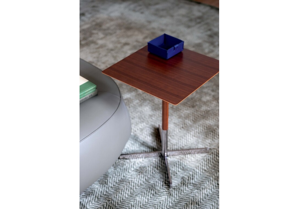 Bob, von Jean-Marie Massaud für Poltrona Frau entworfen, ist ein Beistelltisch, bestehend aus einer Platte aus Canaletto-Walnuss, Marmor oder mit Pelle Frau-Leder bezogen. Bein- und Querträgerbasis aus Stahl. Er ist mit runder oder quadratischer Platte und in verschiedenen Größen erhältlich.