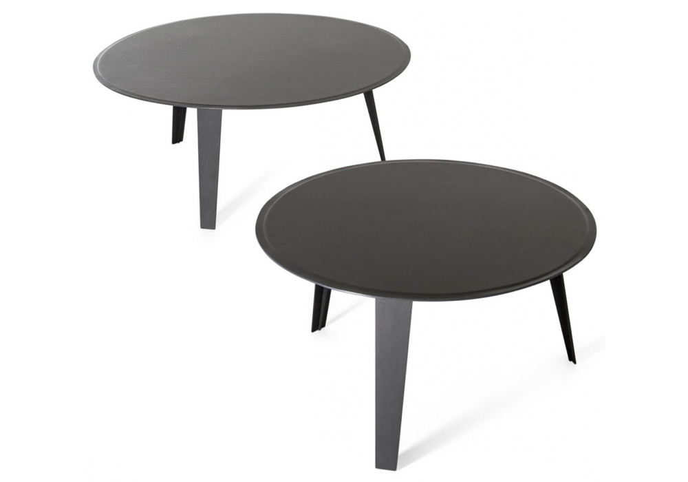 Bloom entworfen und hergestellt von Ivano Redaelli, ist ein runder Couchtisch mit anthrazitfarbener Metallstruktur und mit Vollnarbenleder bezogener Platte. Bloom ist in verschiedenen Größen und Lederausführungen erhältlich.