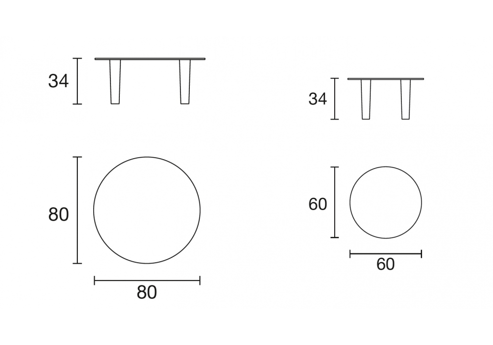 | Abmessungen | Ø 60 x H 34 cm; Ø 80 x H 34 cm. |