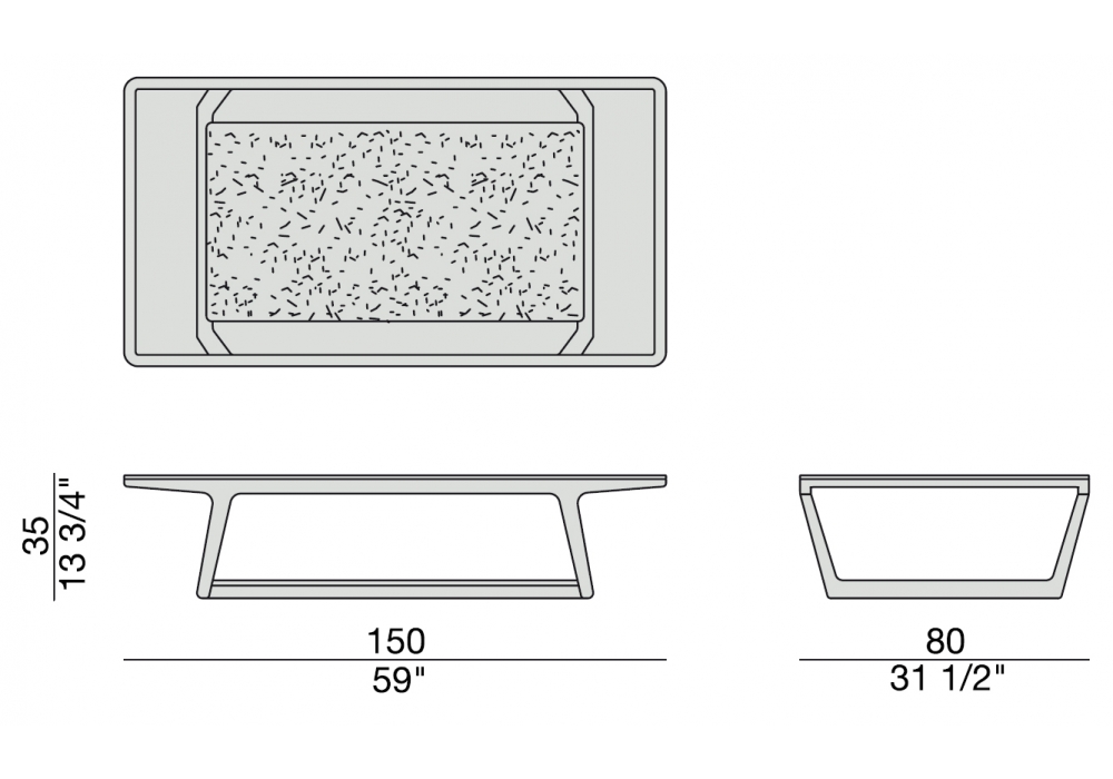Script, von Emmanuel Gallina für Porada entworfen, ist einer Couchtisch mit Struktur aus massiver Esche in verschiedenen Ausführungen. Unterplatte aus Marmor und Oberplatte aus ESG-Rauchglas mit abgerunteden Kanten (Stärke 10 mm).