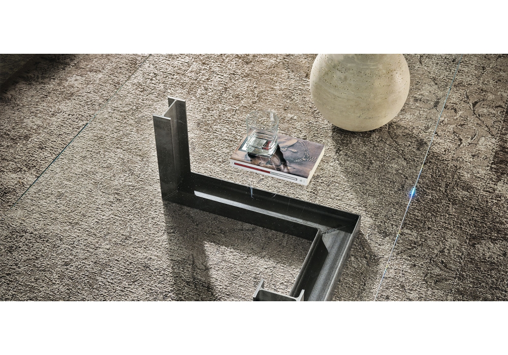 Levante, von Giorgio Cattelan für Cattelan Italia entworfen, ist einer Couchtisch mit Basis aus transparent lackiertem Stahl und Kugel aus natürlichem Travertin. Platte in Klarglas. Verfügbar in verschiedenen Abmessungen. Die Ausführung der Basis identifiziert eine transparente Beschichtung auf roh Stahl. Die Anwesenheit von Flecken mehr oder weniger offensichtlich, Farbvariationen, Kratzer und ungleichmäßige Kanten sind eigenschaften der spezielle Verarbeitung des Materials und sind nicht als Fehler zu betrachten.