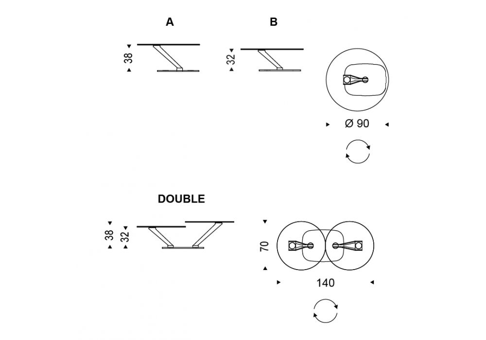 | Abmessungen | ø 90 cm x H 38 cm; ø 90 cm x H 32 cm; Double_ 140 x 70 x H 38 cm |