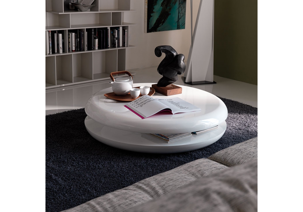 Yo-yo von Emanuele Zenere für Cattelan Italia entworfen, ist einer Couchtisch aus glänzend weiß lackiertem Holz. Drehbarer Platte.