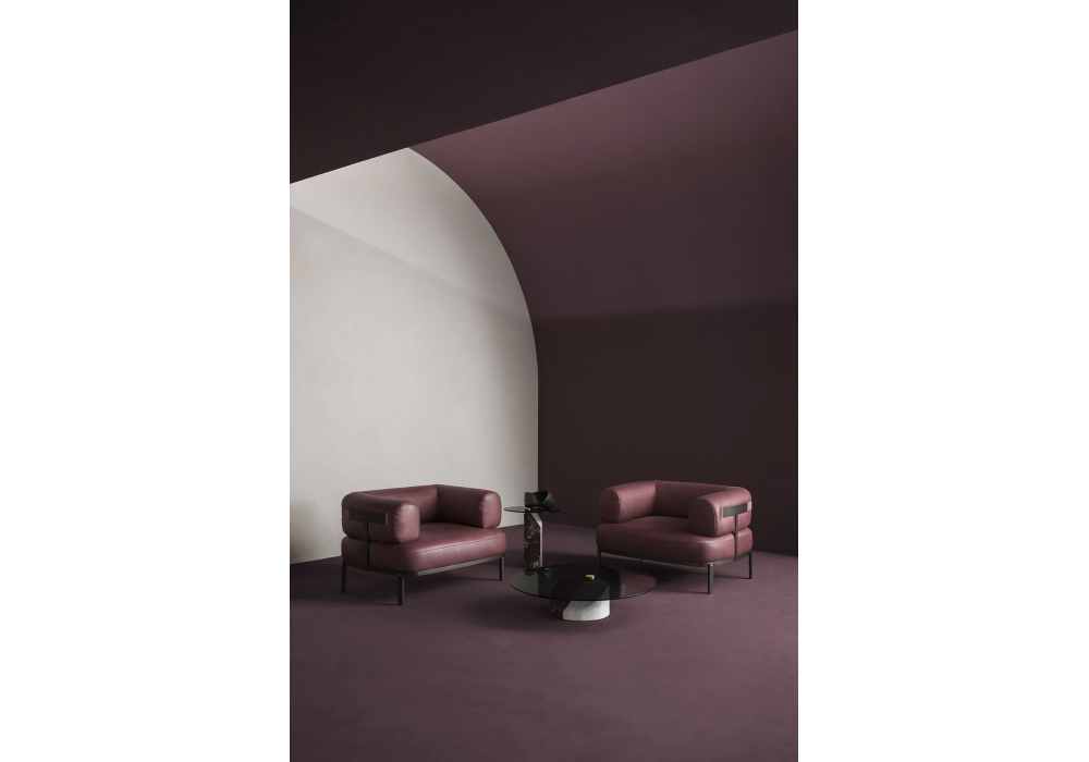 Ziggy von Pietro Russo für Baxter entworfen, ist ein Beistelltisch mit Marmorbein: White Gioia / Rosso Lepanto und Platte aus Fumée-Glas. Auch verfügbar in 2 Abmessungen.