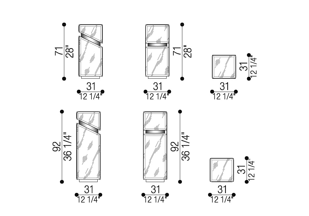 | Abmessungen | 31 x 31 x H 71 cm; 31 x 31 x H 92 cm; |