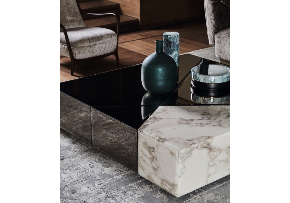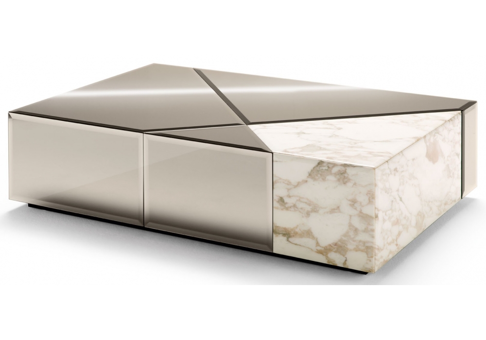Cyrano von Castello Lagravinese Studio für Opera Contemporary entworfen, ist ein Couchtisch aus bronzierten Spiegeln und Marmor, verfügbar in verschiedenen Ausführungen. Auch verfügbar in 2 Abmessungen.