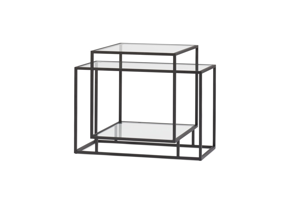 Tangled von Carolina Wilcke für Spectrum entworfen, ist ein Beistelltisch mit Struktur aus massivem Stahl, Schwarz oder Taupe pulverbeschichtet. Glas (5 mm) verfügbar in 2 verschiedenen Ausführungen: klar oder geräuchert.